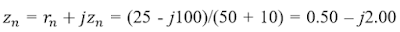 zn = 0.50 - j2. dinormalisasi zn = 0.50 - j2.